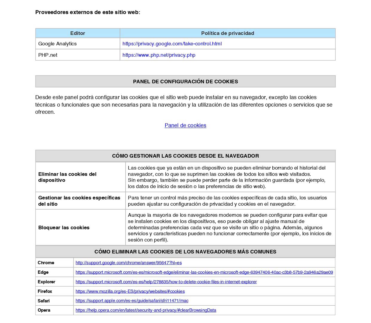 COOKIES UTILIZADAS EN ESTE SITIO WEB